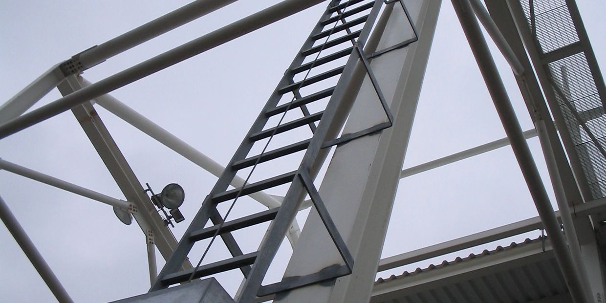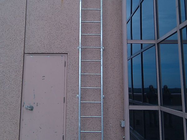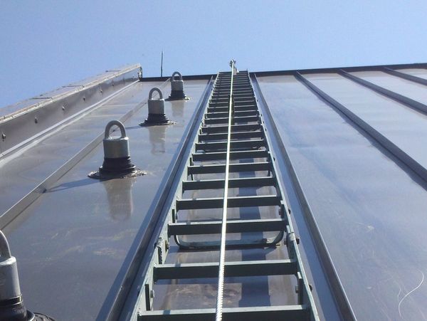 Fixed rail ladders are a permanent means of rooftop or elevated access and are designed with an integrated fall arrest system. A secure rail runs the length of the ladder, and workers connect a using a guided sleeve that travels with them as they climb.